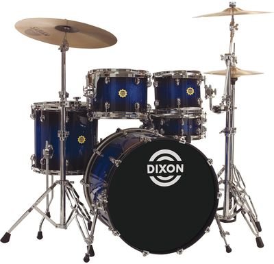 Shop online Dixon Outlaw Series OL-522E-BLBS 5-Piece Drum Set, Blue burst sparkle (Cymbals & Hardware not included). Dixon's outlaw series drumsets pack a heavy punch with killer looks and a sound to match! outlaw drums feature 7-ply maple shells (7mm bass/snare shells, 6 mm tom shells) with 45-degree bearing edges and 2.3 mm power hoops. evans g2 batter heads and g1 resonant heads contribute to the outlaw's commanding character. available in blue burst sparkle, black burst and tobacco burst high gloss lacquer finishes. select add-on drums available.7-ply Birch/Mahogany 7mm bass and snare shells, with 6mm toms... >> Learn more »